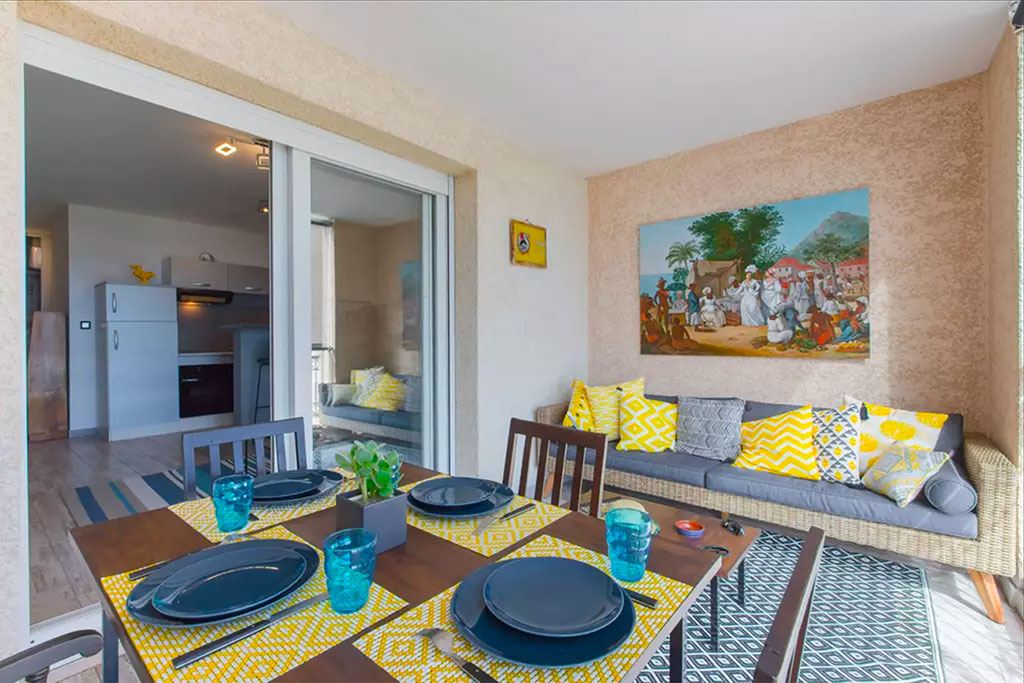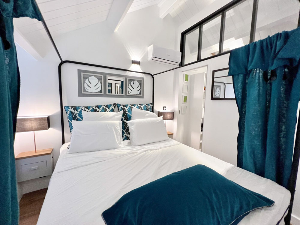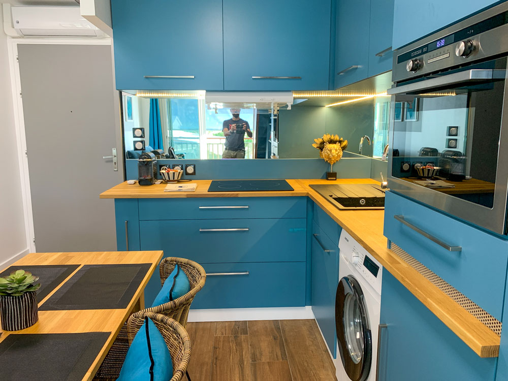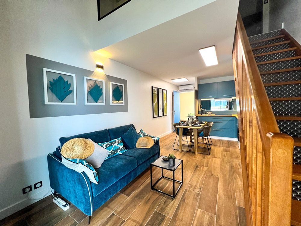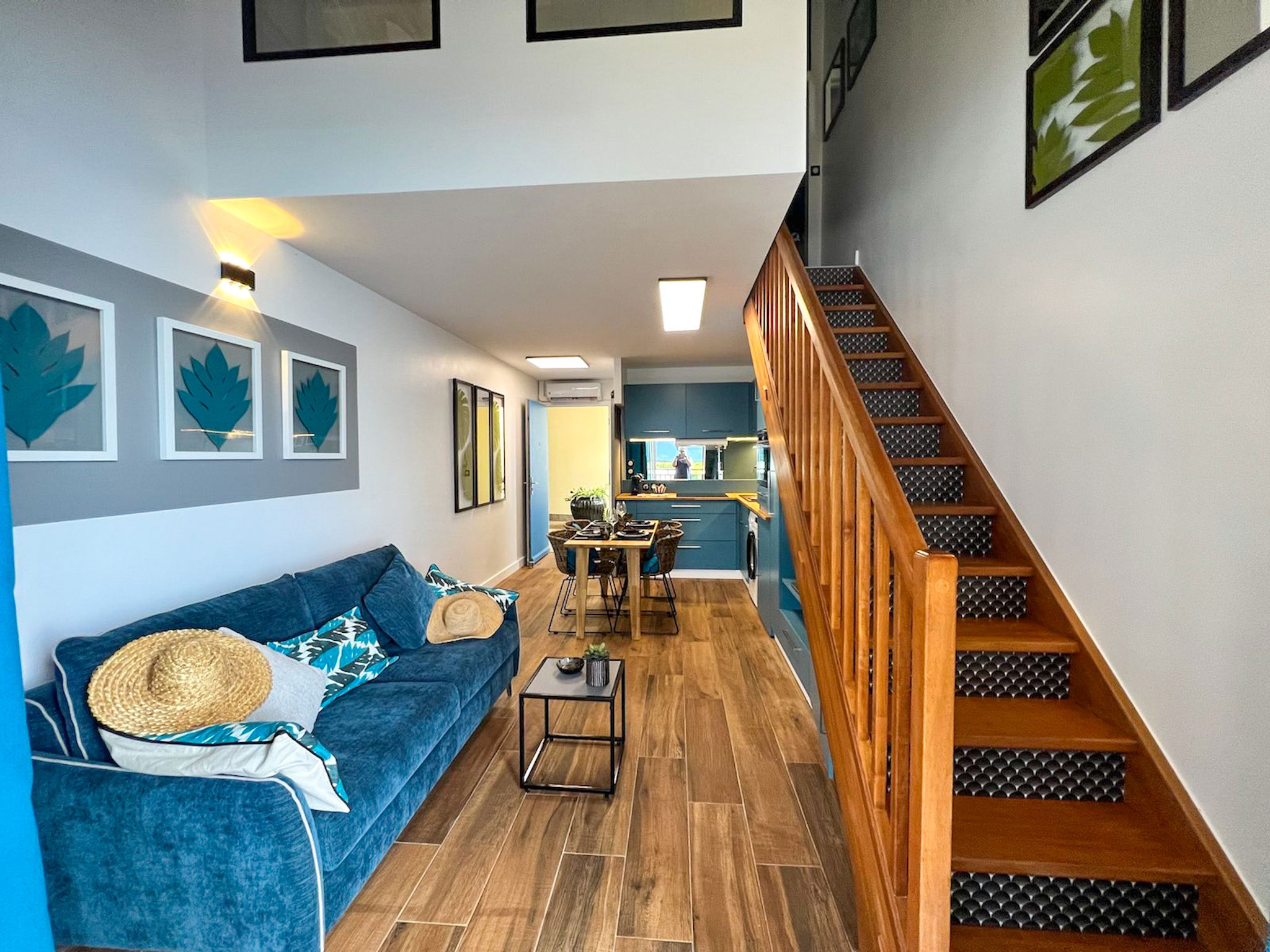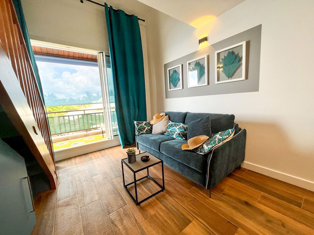 Un duplex refait à neuf, redécoré avec soin, donnant sur l’esplanade des Roches Noires et sur l’Océan Indien